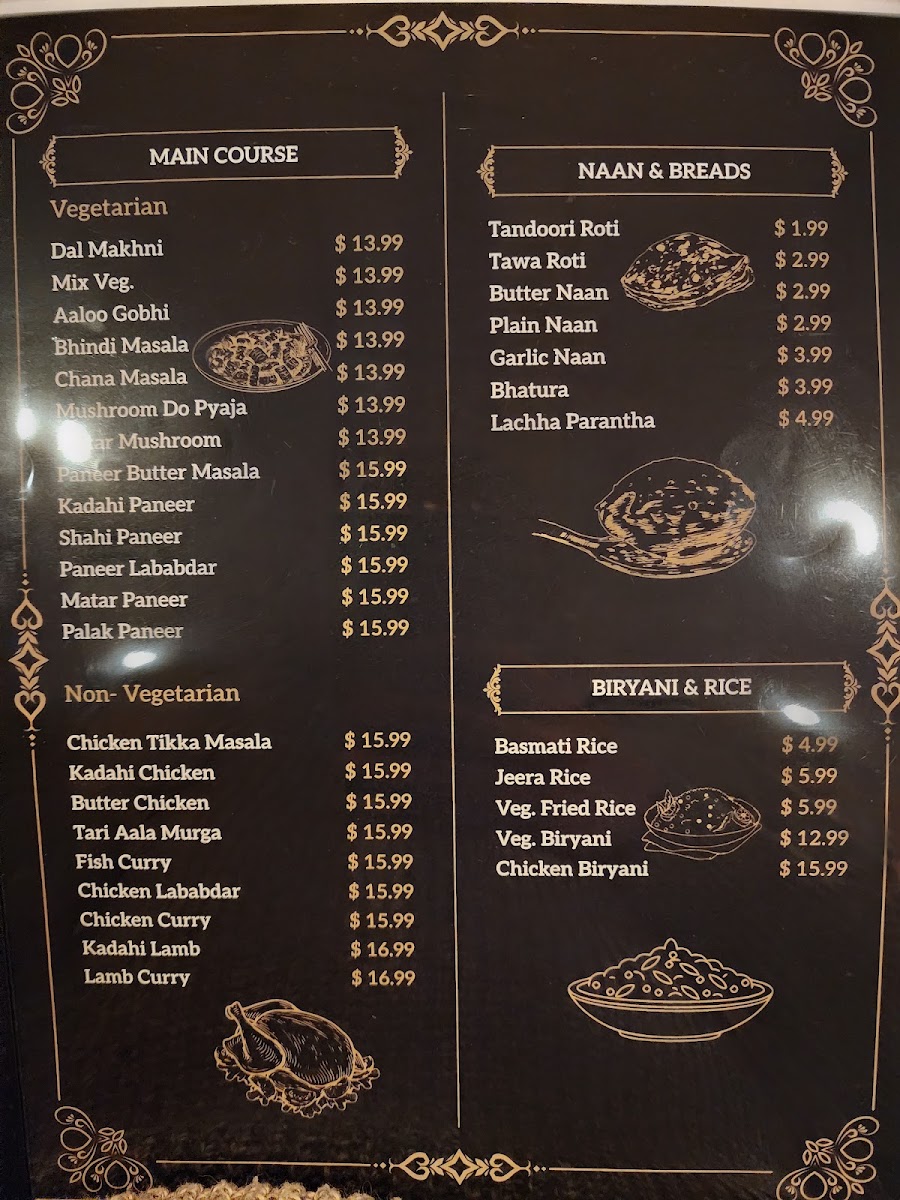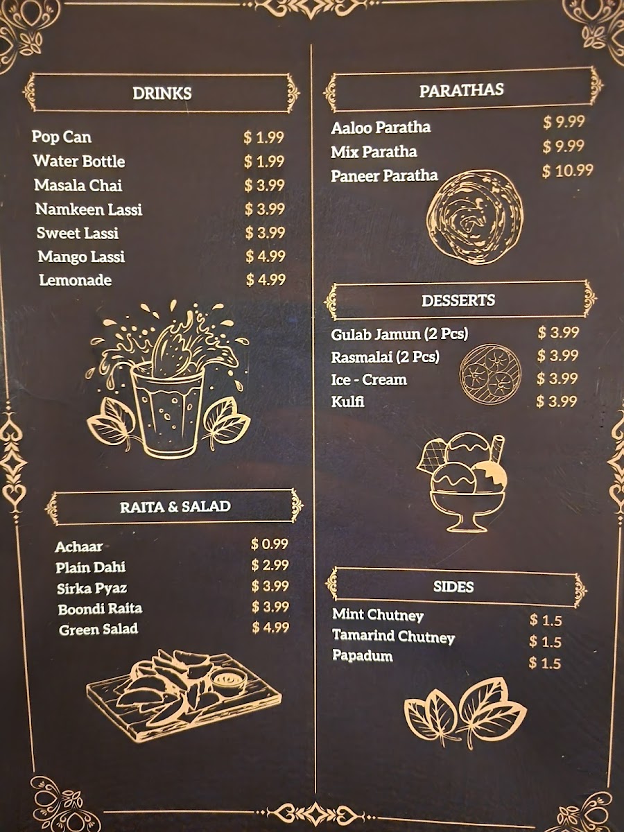 The menu at Daana Paani reflects a welcoming and comforting approach to traditional Indian cuisine, featuring a balanced mix of hearty mains, fresh breads, and soothing beverages. It’s the kind of selection that fits effortlessly into a casual meal out — whether you’re stopping by for a relaxed lunch or gathering with friends and family for an evening that stretches into conversation.